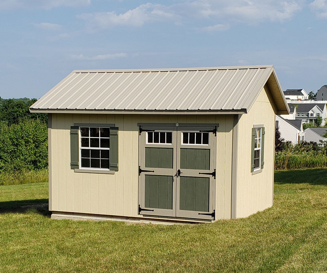 This model is built to give you dependable storage, easy access for larger items, and a more polished backyard look. Decorative details like shutters and hinges help the shed feel more intentional in the landscape, while the roomy interior makes it easier to organize tools, supplies, and equipment in one place.