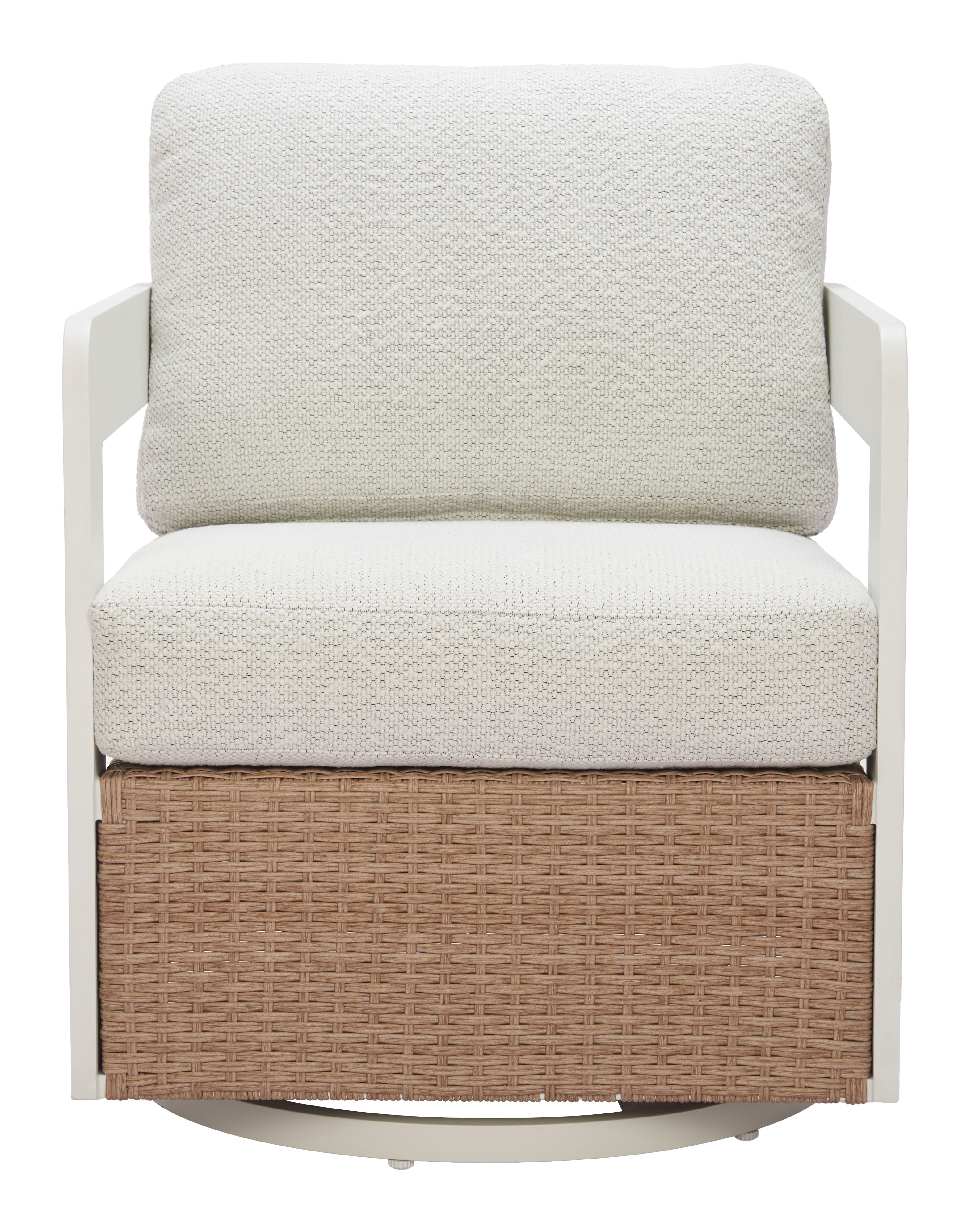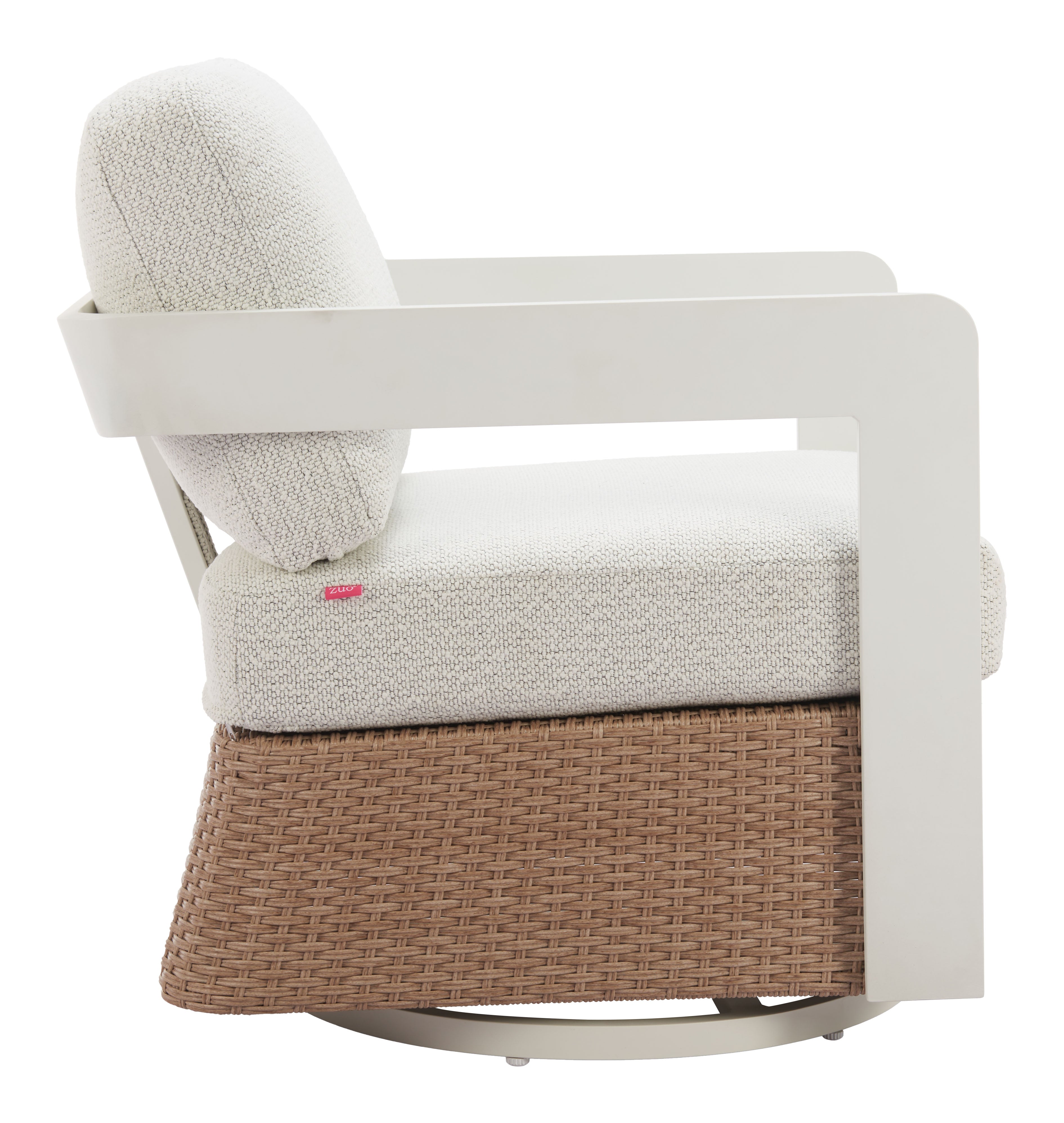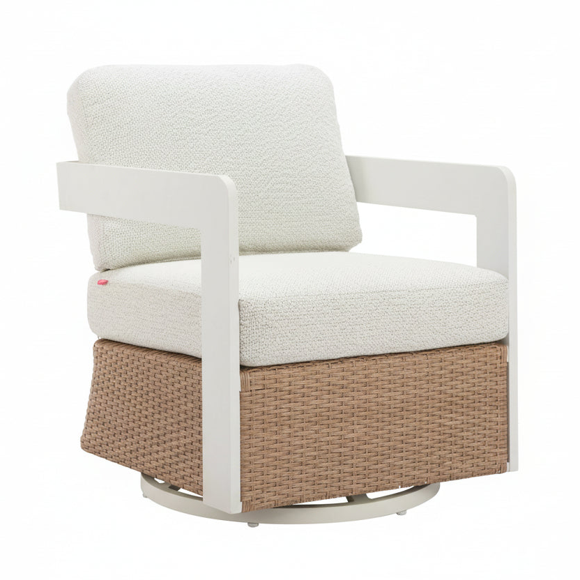 The Gelo Swivel Chair stands out for its clean lines, relaxed two-tone look, and smooth swivel function. It is a strong fit for homeowners who want outdoor seating that feels refined without giving up comfort. The white and brown color palette adds a bright, natural look that works well in modern, coastal, and casual outdoor spaces.