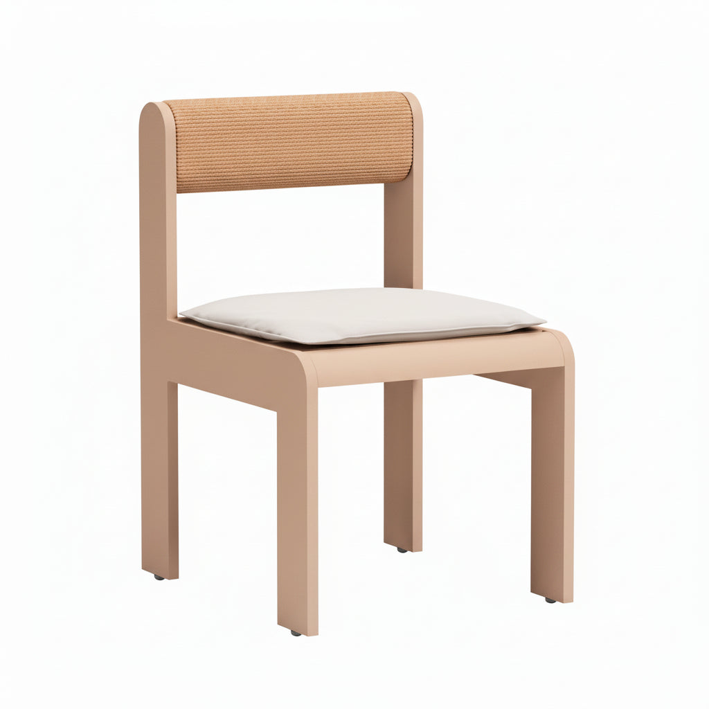 Built with synthetic rattan weave and a faux wood aluminum frame, this dining chair works well in spaces where you want comfort, durability, and a more polished outdoor look.